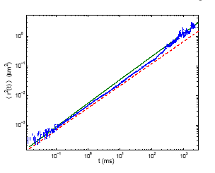 MSD <r2(t)> of actin filaments' ends as function of time.Experimental